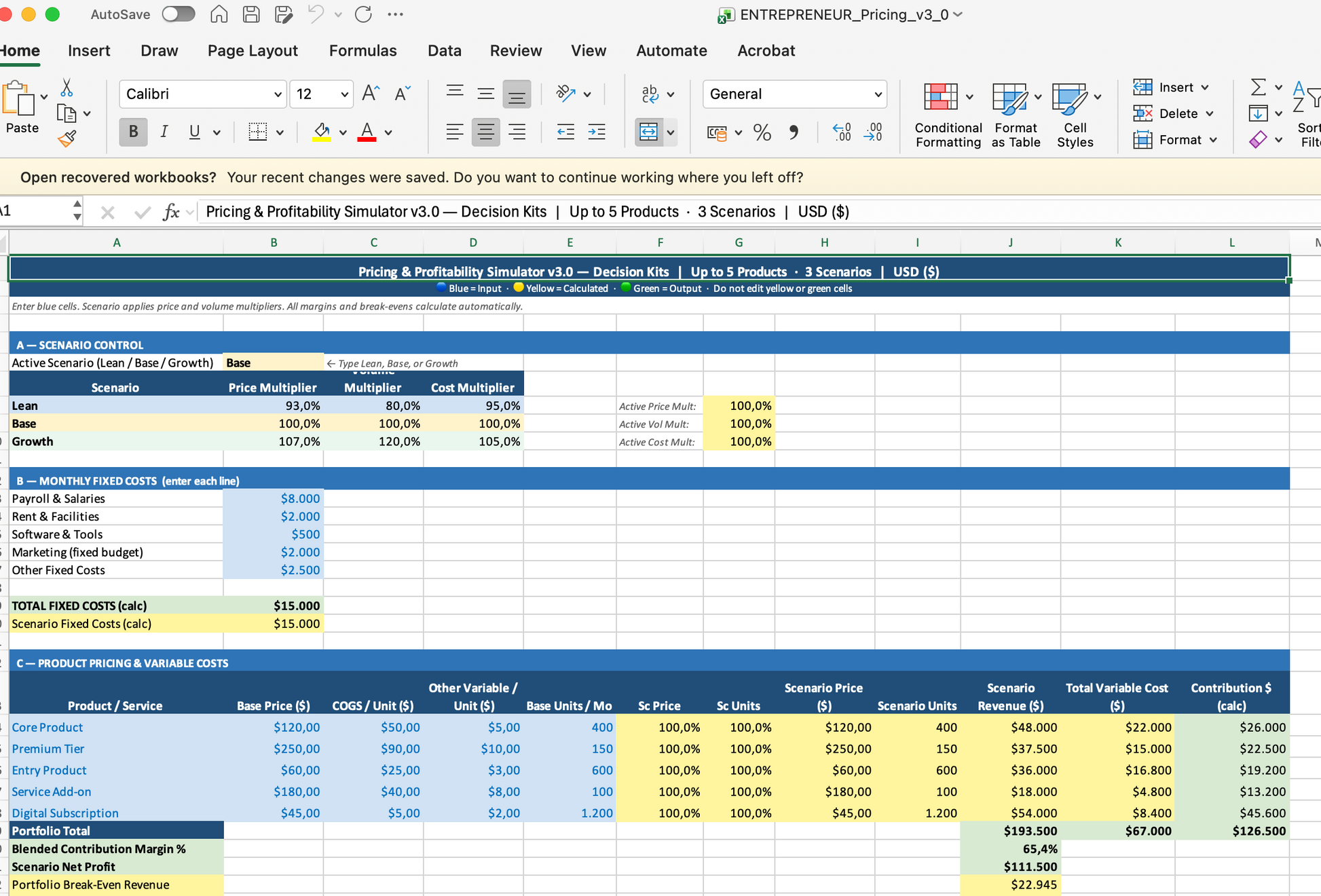 A complete 10-template Entrepreneur System designed to help founders plan, budget, price, hire, measure KPIs, track runway, break-even, and operate with clarity. Built for early-stage entrepreneurs, CEOs, and solo founders who want a simple, powerful structure to run their business like a pro.